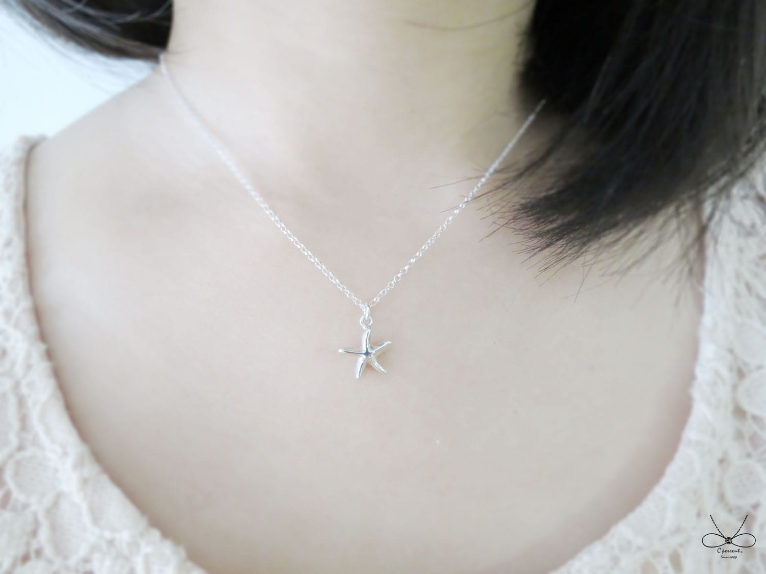 尺寸Size: 海星墬子大小約為 1.2cm x 1.2cm、項鍊長度為16吋約 40.6cm(鎖骨鍊)