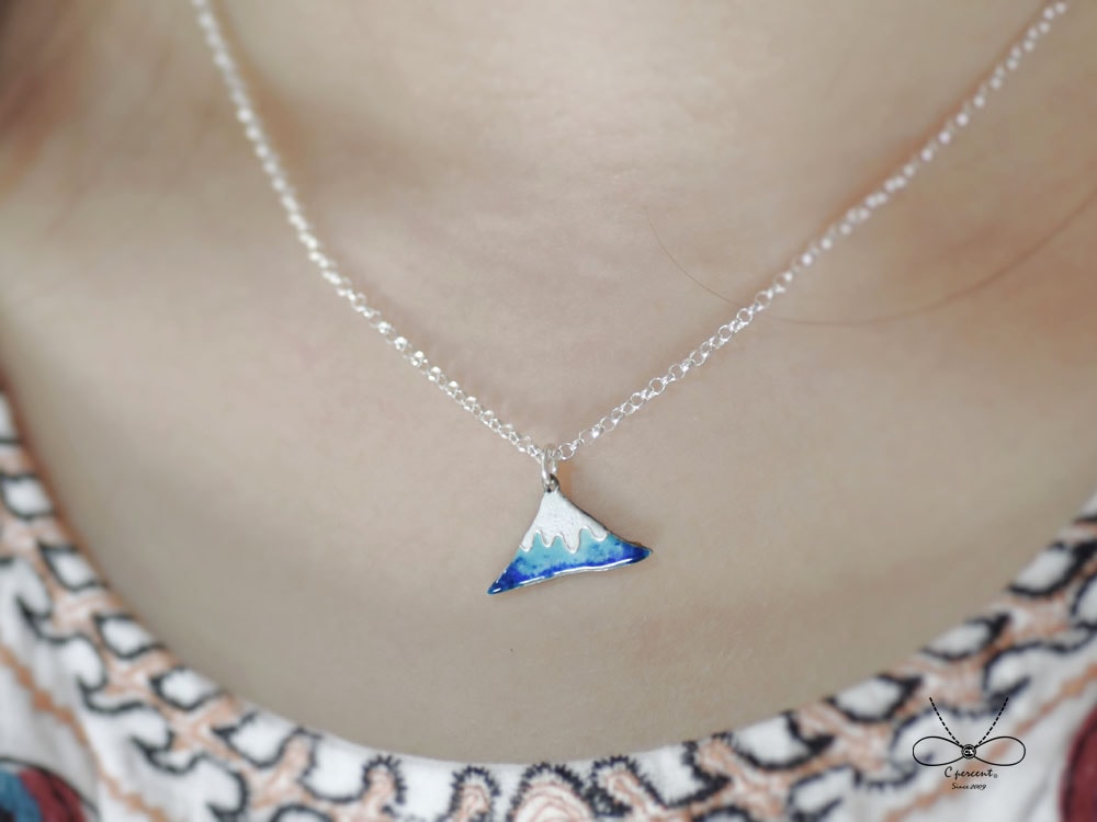 富士山 (琺瑯項鍊 景泰藍 七寶燒 925純銀項鍊)