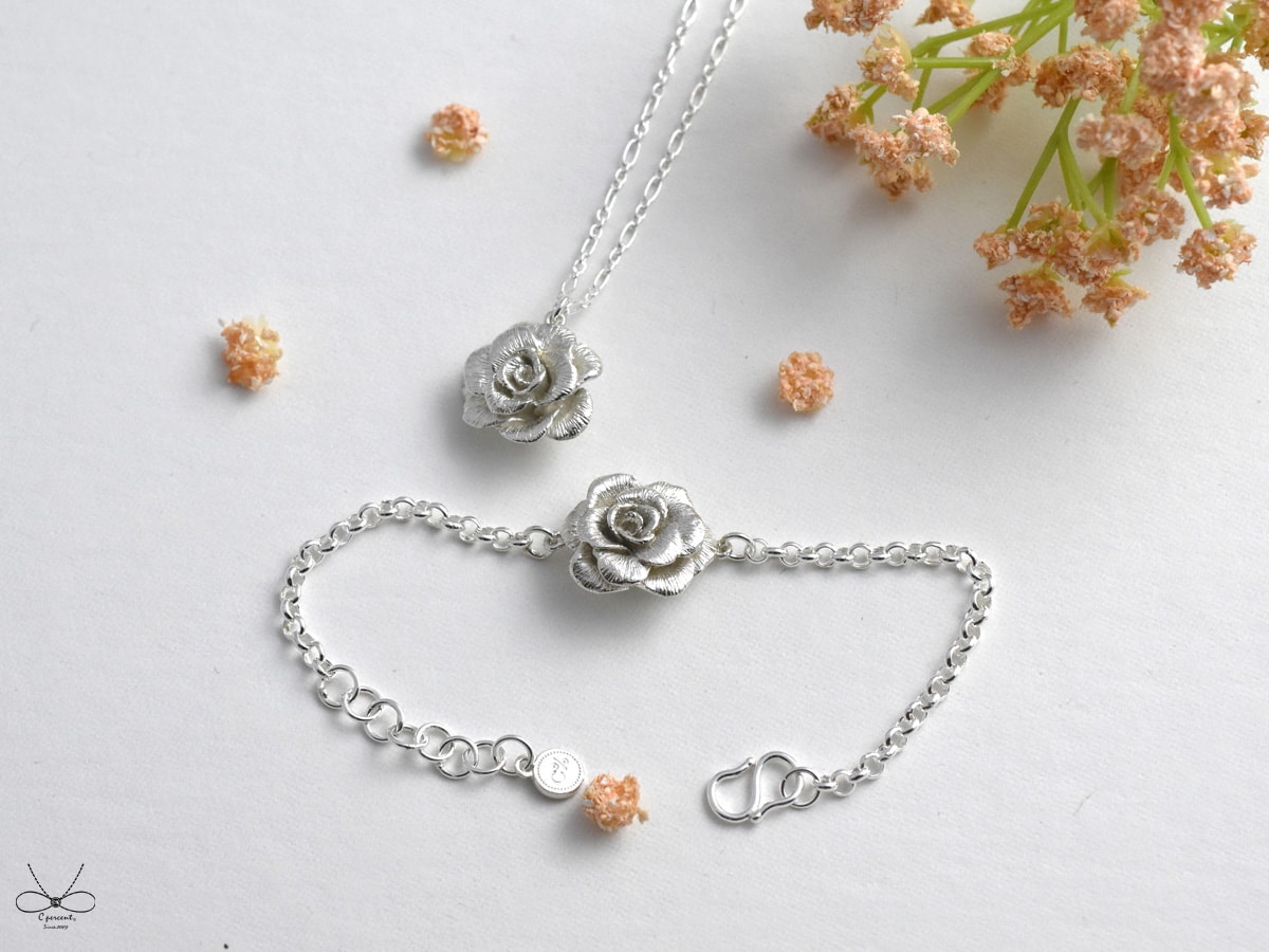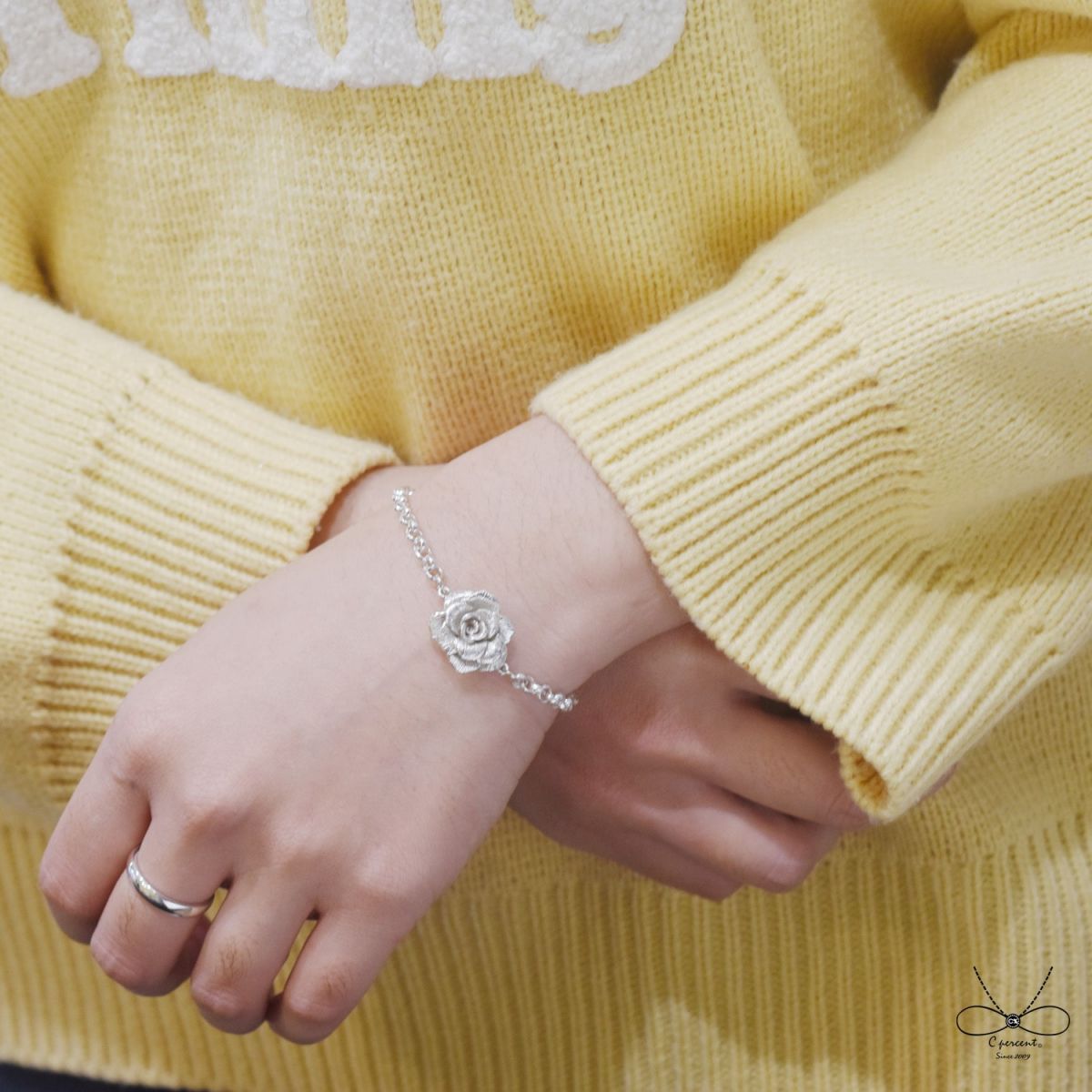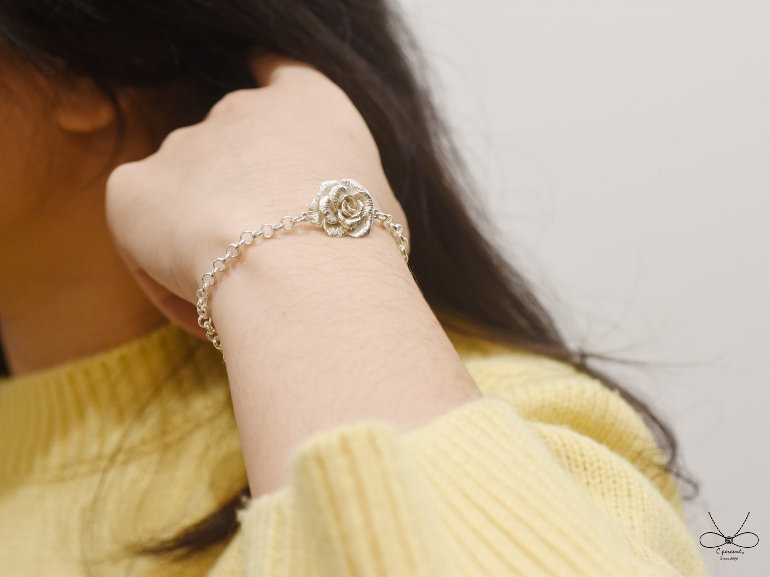 一朵玫瑰花 | 純銀手鍊 女款 花朵 情人節禮物 手工銀飾
