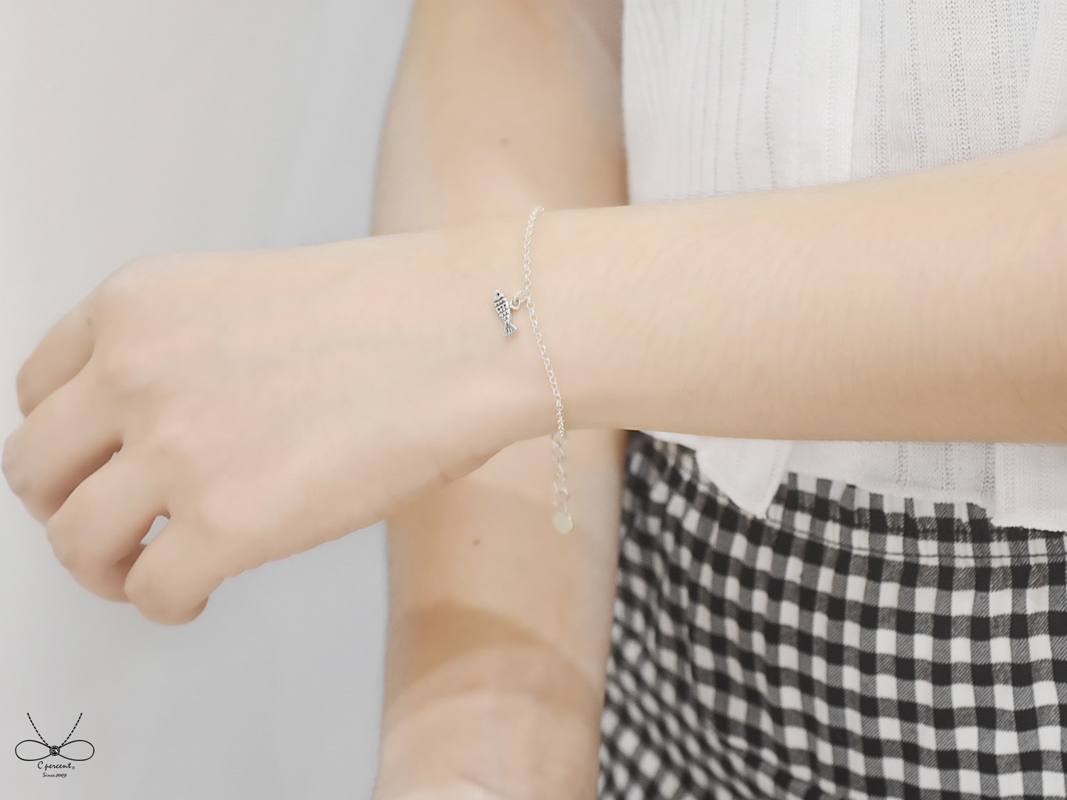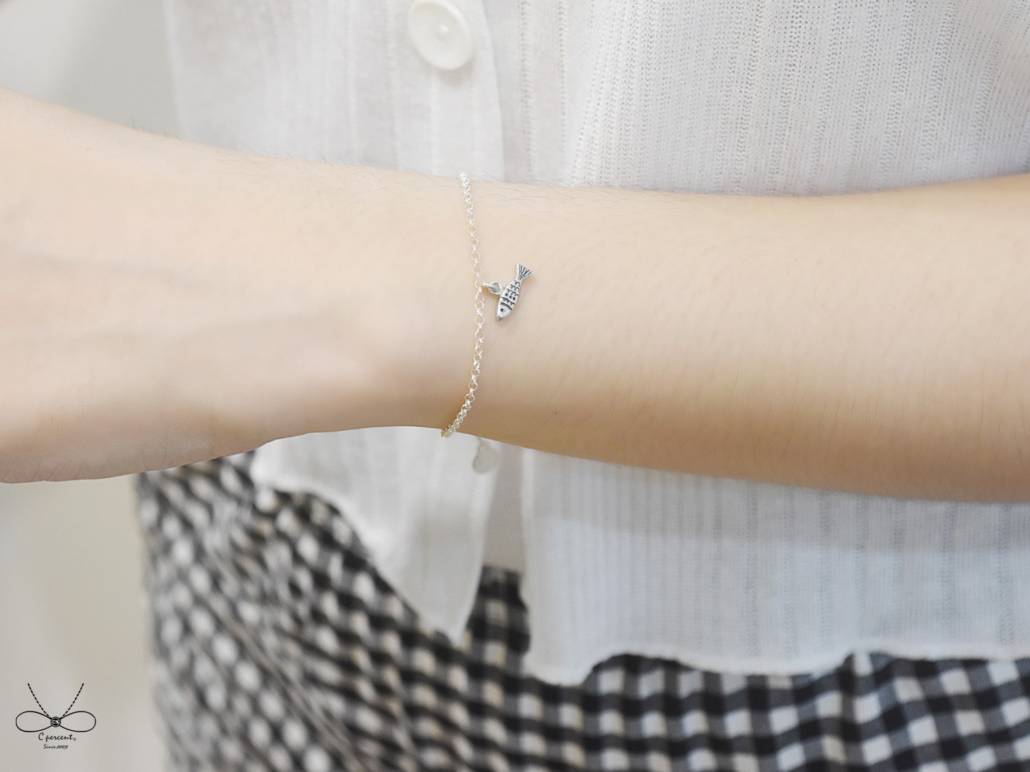 整體小魚手鍊為拋光亮面製作,簡約可愛,很適合日常配戴!