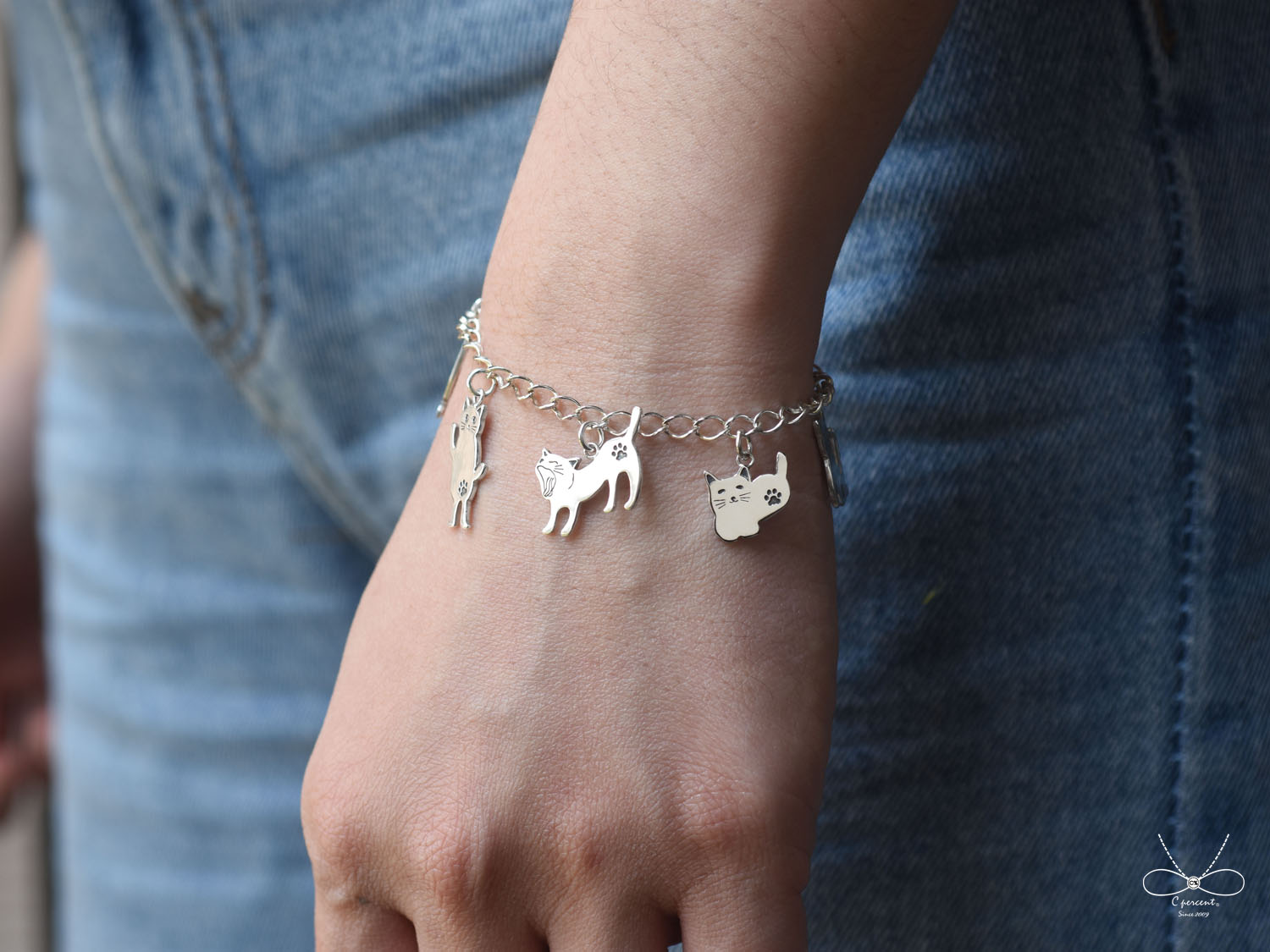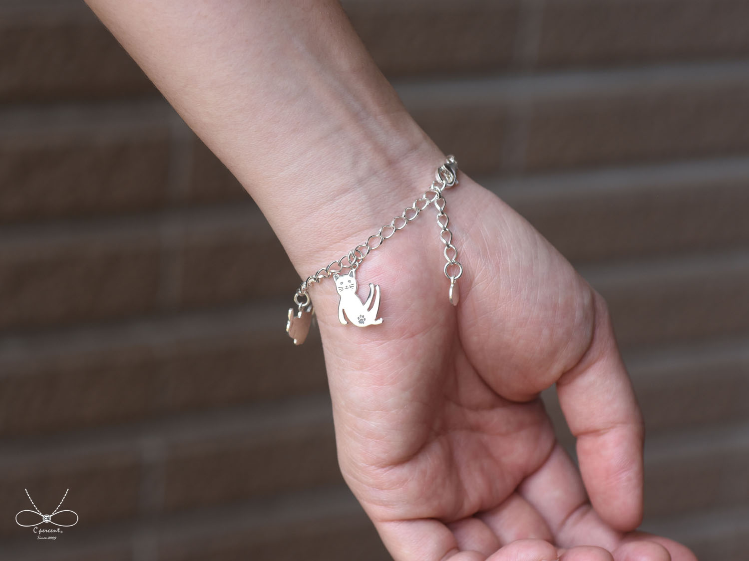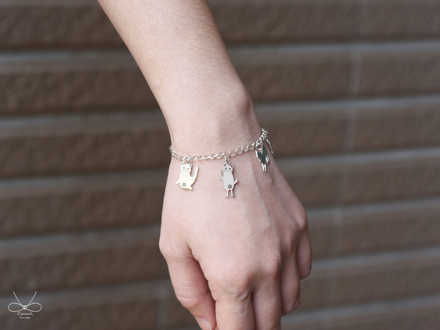 把貓咪平常可愛的模樣通通集結在手鍊銀飾上